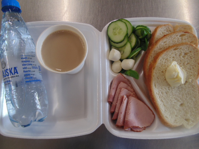 | Chleb graham 50g (gluten), szynka gotowana 30g (soja, mleko), margaryna śniadaniowa 5g (mleko) | Chleb graham 100g (gluten), margaryna śniadaniowa 15g (mleko), jajko w sosie wiosennym: jajko 1szt., jogurt naturalny (mleko) 20g, pomidor 30g, ogórek 30g, szczypiorek, sałata lodowa, herbata 200ml. | serek homogenizowany naturalny 150g (mleko). |
