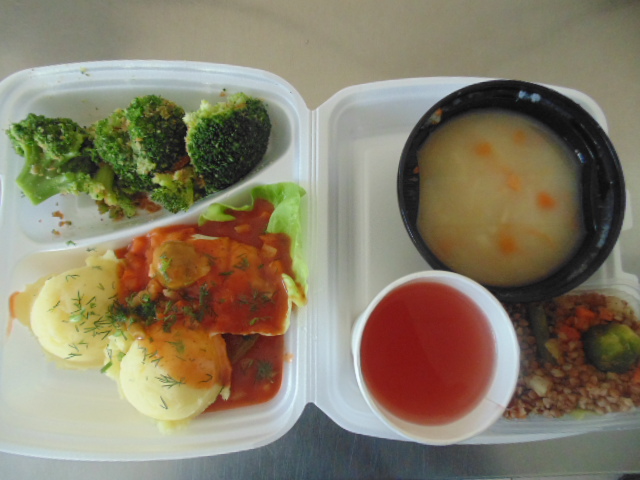 | Chleb graham 100g (gluten), margaryna śniadaniowa 15g (mleko), polędwica z indyka 60g (soja, gluten, gorczyca), pomidor 50g, roszponka, zupa mleczna z płatkami owsianymi 400ml (mleko, gluten), herbata 200ml, woda niegazowana 0,5l. | Chleb graham 50g (gluten), margaryna śniadaniowa 5g (mleko), pomidor 50g. | Zupa jarzynowa z lanym ciastem: mąka pszenna 30g (gluten), jajko 1/3 szt., marchew 30g, pietruszka 20g, seler 20g, śmietana 10 g (mleko), wywar kostny, przyprawy (seler), bukiet jarzyn mrożonych (seler)40g, risotto mięsno – jarzynowe w sosie pomidorowym: biodrówka 50g, wołowina b/k 50g, mąka pszenna 30g (gluten), śmietana 5g (mleko), marchew 50g, pietruszka 30g, seler 20g, olej, koncentrat pomidorowy 15g, przyprawy (seler), brokuł na parze, kompot z jabłek 200ml. |