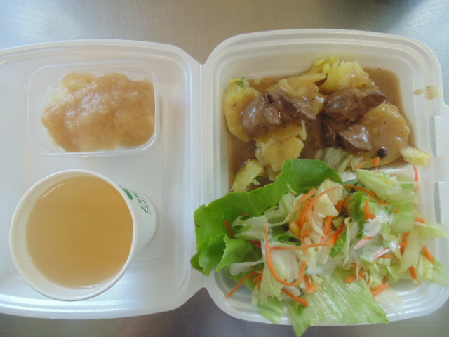 | Chleb graham 50g (gluten), jajko , margaryna śniadaniowa 5g ( mleko). | Chleb graham 100g (gluten), margaryna śniadaniowa 15g (mleko), zupa ziemniaczana z mięsem: ziemniaki 250g, biodrówka 30g, marchew 30g, pietruszka 20g, seler 20g, śmietana 10g (mleko), kości 10g, przyprawy (seler), herbata 200ml. | Ryż z jabłkami: ryż 30g, jabłka 80g, cynamon. |