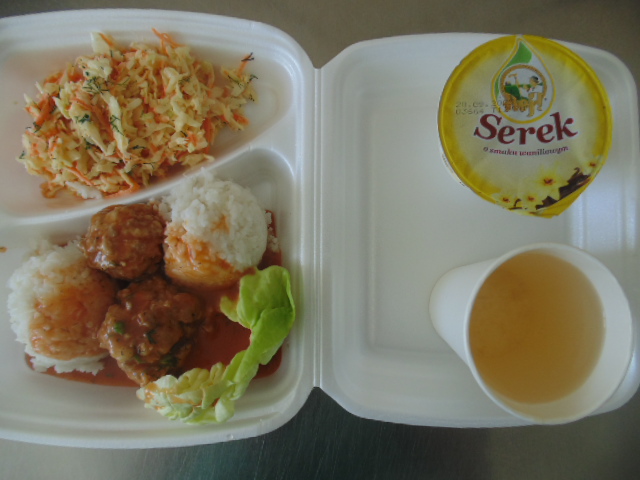 | Posiłek dodatkowy: Ryż z jabłkami (ryż, jabłka, cynamon) | Wartość energetyczna [kcal] 2002,2 Wartość odżywcza: Białko [g] 62,5 Tłuszcz [g] 75,4 Kwasy tłuszczowe nasycone [g] 19,9 Węglowodany ogółem [g] 261,5 Błonnik pokarmowy [g] 20,2 Sól [g] 5,1 | Wykaz alergenów zgodnie z ROZPORZĄDZENIEM PARLAMENTU EUROPEJSKIEGO I RADY (UE) NR 1169/2011 Z DNIA 25 PAŹDZIERNIKA 2011 r.:1. zboża zawierające gluten, 2. skorupiaki, 3. jaja, 4. ryby, 5. orzeszki ziemne, 6. ziarno sojowe, 7. mleko, 8. orzechy z drzew orzechowych, 9. seler, 10. gorczyca, 11. ziarno sezamowe, 12. dwutlenek siarki oraz siarczyny, 13. łubiny, 14. mięczaki |