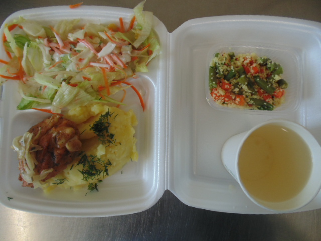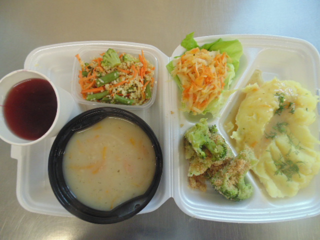 | Posiłek dodatkowy: Sałatka jarzynowa: marchew, ziemniaki, pietruszka, seler, jabłko, groszek konserwowy, jajko ½ szt, majonez (gorczyca, jajko), jogurt naturalny (mleko), chleb graham (gluten) 30g | Wartość energetyczna [kcal] 2322,9 Wartość odżywcza: Białko [g] 92,5 Tłuszcz [g] 87,2 Kwasy tłuszczowe nasycone [g] 17,7 Węglowodany ogółem [g] 308,9 w tym cukry [g] 55,1 Błonnik pokarmowy [g] 32,05 Sól [g] 6,08 | Wykaz alergenów zgodnie z ROZPORZĄDZENIEM PARLAMENTU EUROPEJSKIEGO I RADY (UE) NR 1169/2011 Z DNIA 25 PAŹDZIERNIKA 2011 r.:1. zboża zawierające gluten, 2. skorupiaki, 3. jaja, 4. ryby, 5. orzeszki ziemne, 6. ziarno sojowe, 7. mleko, 8. orzechy z drzew orzechowych, 9. seler, 10. gorczyca, 11. ziarno sezamowe, 12. dwutlenek siarki oraz siarczyny, 13. łubiny, 14. mięczaki |
